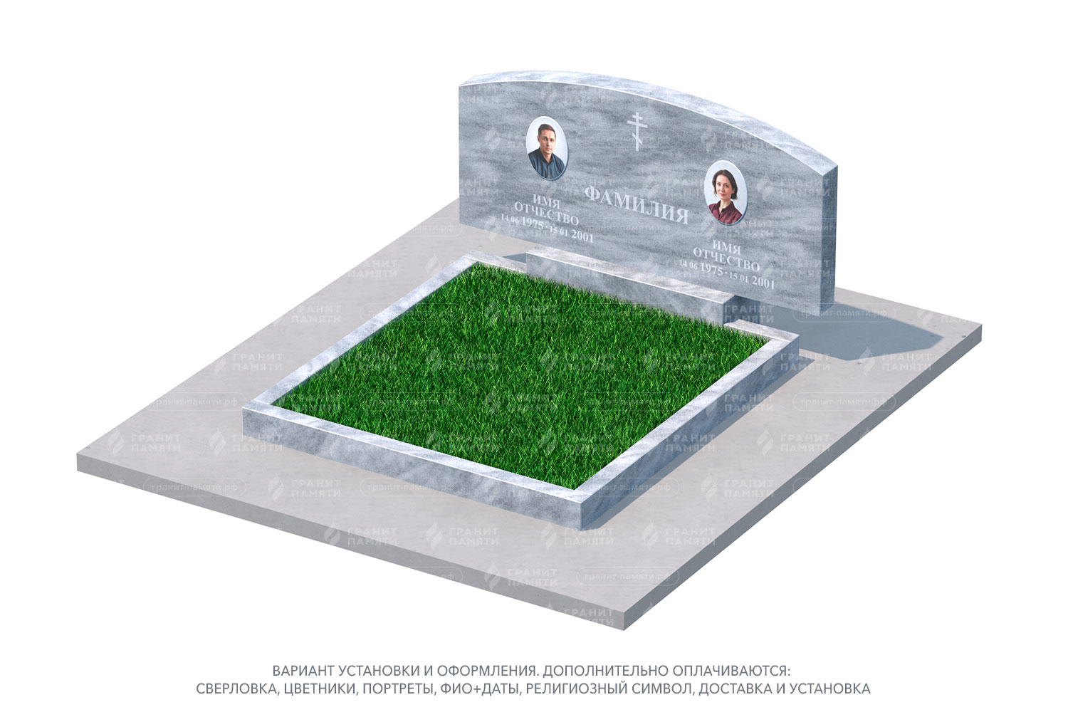 Мы можем добавить портреты на фотокерамике, гравировку с именами, датами и эпитафиями, а также декоративные элементы.